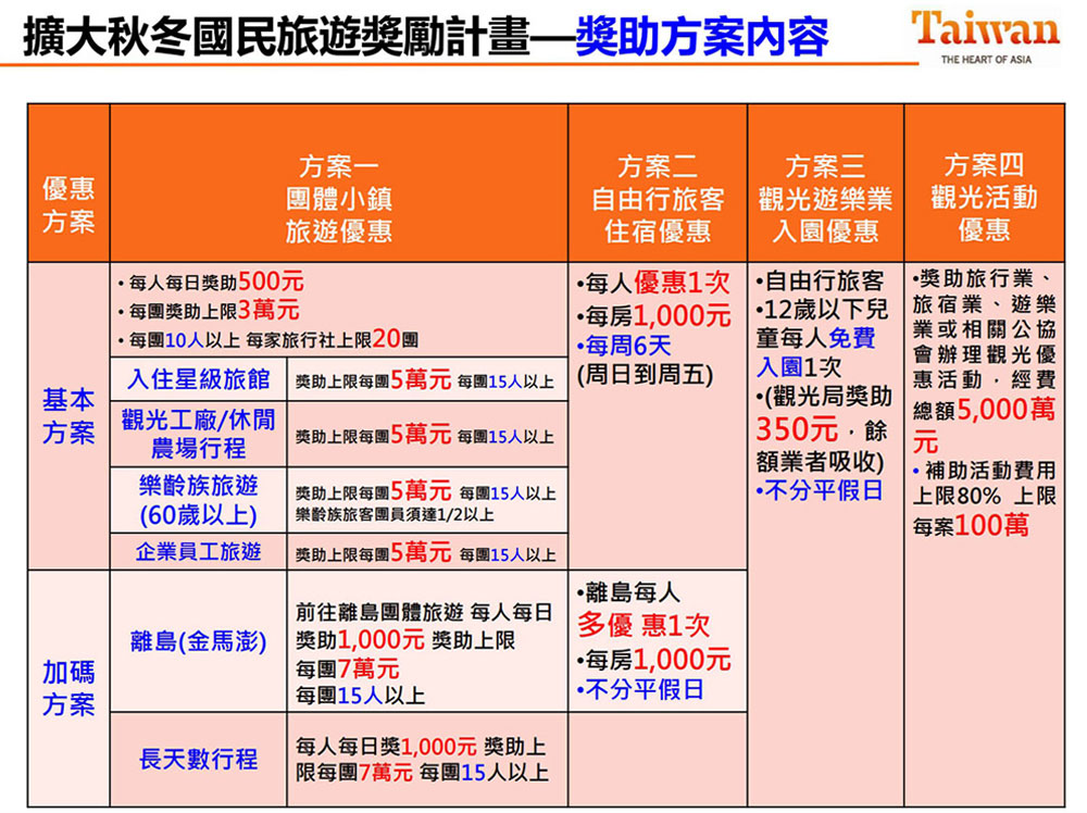 交通部觀光局在9/1起將推出「擴大秋冬國民旅遊獎勵計畫」